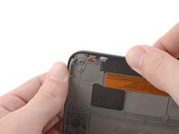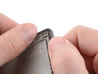 Angle an opening pick straight down, and insert its tip under the top right corner of the back cover, near the power button.
