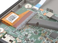 Apply a heated iOpener to the interconnect cable's ZIF connector on the motherboard for 90 seconds to soften the coating.