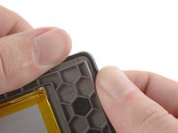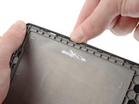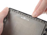 Apply a heated iOpener to the plastic motherboard buffer for 90 seconds to soften the adhesive securing it to the frame.