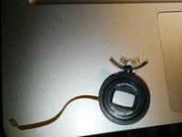 A couple of hidden ones, but once you get through them, you can pry the lens unit off of the camera, and take care with the ribbon cable here, it seems a bit delicate.