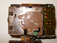 View of the back of the camera. Dirt and grime from water damage becomes instantly recognizable.