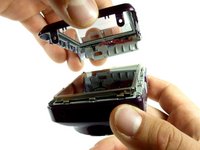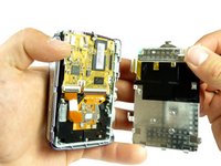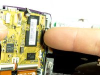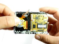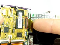 • The next step is to remove the white ribbon on the upper right hand corner next to the LCD screen.