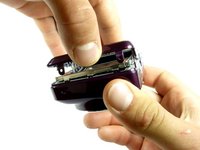 • On the bottom, there are three Philips #00 4.5 mm screws. Two are for the front panel and one is for the back panel. To remove the back panel, take out the screws indicated in the final picture of the sequence.