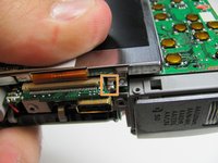 Flip up the black tab on the bottom of the LCD screen with a fingertip.
