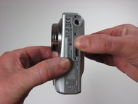 Slide the battery cover in the direction of the arrow with your finger gently.