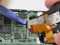 To place new lens, peel off silver tape before inserting ribbon cable into proper slot.