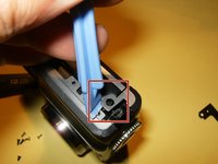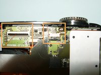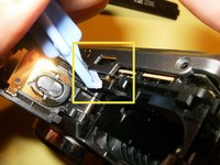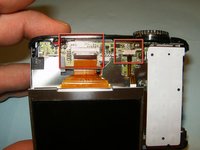 • Push the compression clip away from the connector with your fingernail or a small tool. Moving the clip a few millimeters will fully detach the LCD from the camera.