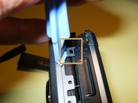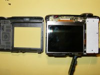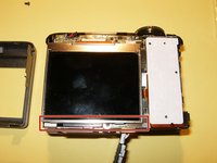 • Separate the rear case from the camera by wiggling the opening tool. You should have a clear view of the LCD in its frame.