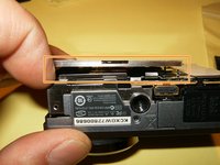 • Remove the screw on the right side, underneath the side cover. The side cover is attached to the camera by one of the screws on the bottom, and the cover should easily slide down to reveal the screw.
