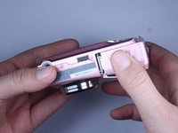 Locate battery compartment on bottom of camera and slide open by applying pressure in the direction of the arrow.