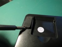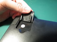 • Use a small flathead screwdriver to lift up the clear plastic side until it lifts over the white plastic tab