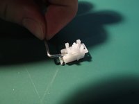 • Use tweezers to gently pull the two metal pin pieces directly upwards out of the white plastic housing