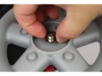 Use the spaded side of the metal spudger to pry off the small black hubcap on the outside of the rear wheel.
