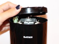 The base plate of the Krups F203 is deceptively difficult to remove. In order to access the parts on the inside, it is necessary to remove the base plate.