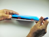 Slide the plastic opening tool around the edge of the device. Gently pry apart the tabs that hold the front cover and the back cover together.