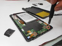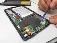 Remove the tape from the edges of the battery and the small piece on the motherboard.