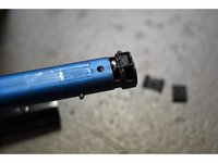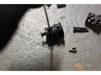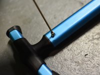 Now pull the rivet out. Again, note that the rivet isn't absolutely necessary- it's to hold the inner shafts in and prevent them from going down too far, but in normal operation, the inner shafts really shouldn't be hitting that rivet.