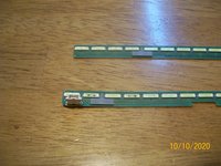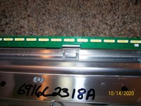 As you can clearly see, LEDs 2 and 4 on the bottom strip are burnt out. I verified this with a magnifying glass. This strip was from the right side that went dark. Next step is to order strips 6916L2318A and 6916L2319A and replace them and put this TV back together.