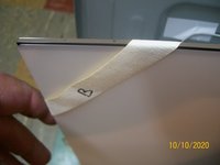 Carefully peal the backing off of the strip and lay it in the position over the tabs. Make sure you keep the sticky side away from the frame for now. When the strip is lined up where it needs to be, carefully push it into position into the frame. This tape is not forgiving so make sure it perfectly straight and flat to the frame, top and bottom