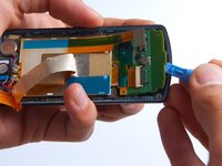 Use a plastic opening tool to carefully disconnect the silver L-shaped LCD screen ribbon.