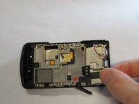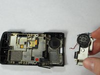 Remove the speaker component from the back of the phone by lifting up the top part to a 45 degree angle and pulling it out.