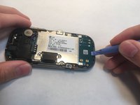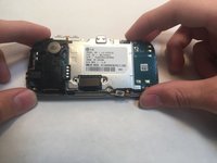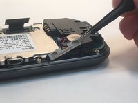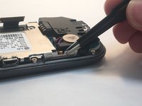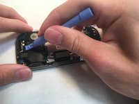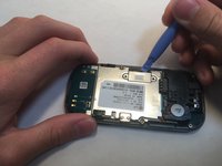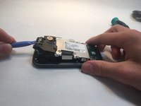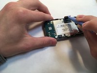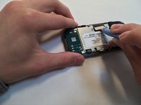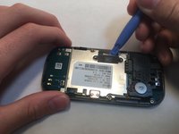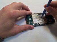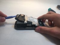 Remove the motherboard from the rest of phone by prying under the board to the side of the headphone jack.