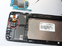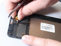 Unplug the rear facing camera ribbon cable from the motherboard by prying up the press fit connector with a spudger.