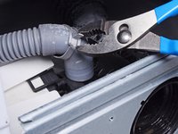 Use slip joint pliers to pinch the drain hose clamp and slide it up the hose away from the pump assembly.