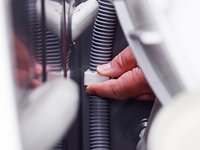 Reposition the drain hose so you can access the plastic clip.