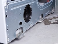 Pull the door latch through its slot in the chassis and let it hang on its wire.