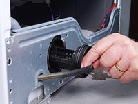 Remove the screw(s) securing the pump assembly to the bottom lip of the washer.