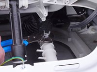 Use a Phillips driver to loosen the pump hose from the drum enough to disconnect it.