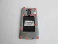 Carefully use the 3.9mm Phillips #00 screwdriver to remove the eleven visible screws found on the back. The screws to be removed are marked with the given indicators.