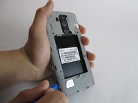 Remove the back cover by placing the plastic opening tool on the bottom left side of the device and gently prying up.