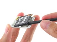 Time to leave the nest, battery. Tiny strips of double-sided tape hold it securely, but offer little resistance to our spudger. We likey.