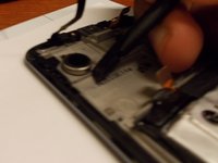 Using the plastic opening tool, or the thin side of the spudger to separate the back cover from the phone. Start at the bottom corner of the phone. Be gentle because it may cause cosmetic and internal damage if not done with care.