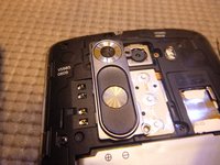 Remove the camera lens cover. I used my sharp pointed tweezers to pop the bottom of the cover up. It is also held in with small clips, much like the battery cover.
