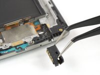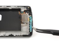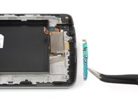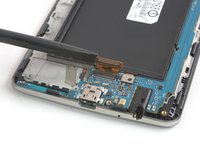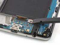 Use a pair of tweezers to carefully pry up and remove the daughterboard at the bottom end of the screen assembly.