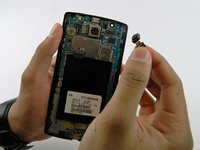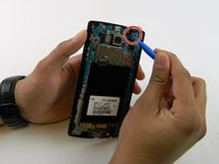 Detach the Front Camera ribbon cable located on the top right corner of the back of the phone by gently lifting it up with a plastic opening tool. Remove the front camera.
