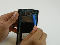 Remove the rear cover by placing the plastic opening tool in the groove on the bottom left side of the LG G4 and gently prying up.