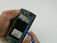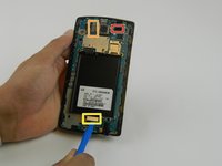Remove the rear cover by placing the plastic opening tool in the groove on the bottom left side of the LG G4 and gently prying up.
