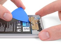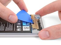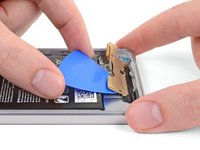 Use a spudger to pry up the press connector at the end of the battery's ribbon cable, disconnecting the battery.