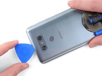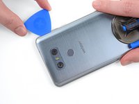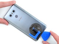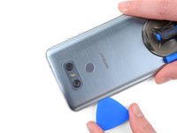 Use a hairdryer, a heat gun, or prepare an iOpener and apply it to the lower edge of the G6 for about a minute to soften up the adhesive underneath the rear glass panel.