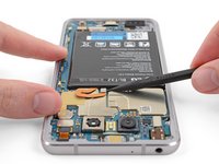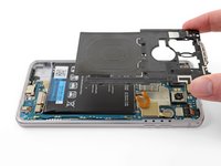 Grab the motherboard by the top end (the end with the cameras) and gently lift it up and out of the phone.