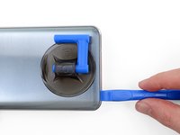 Once all the adhesive is cut, use an opening pick to pry up the rear glass panel.