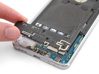 Use the flat end of an opening tool to pry up the USB-C / mic assembly and remove it from the phone.