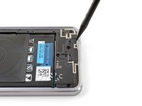 Insert the flat end of a spudger into the small gap between the upper antenna shield and the phone chassis and pry up, releasing the clips holding the shield in place.
