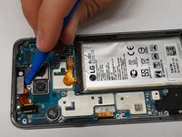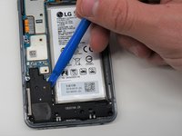 Using an opening tool, carefully pry up the ribbon cable to disconnect the battery.