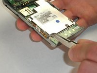 With the screws set aside, wedge your plastic opening tool in between the screen and the case surrounding it. Gently move the tool along the edge to loosen the screen from the casing. Do this again on the other side as well. The screen and case won't be completely separate in this step.