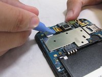 Carefully remove the camera's ribbon cable from the motherboard using the plastic removal tool.